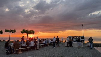 Um das gemütliche Beisammensein zu zelebrieren, stellen wir während der Sommermonate eine MEGA-Tafel auf. Jeweils am ersten Freitag des Monats treffen wir uns, um das Leben am See zu feiern. Wir sind alle sehr gespannt, was aus dieser wunderbaren Idee entstehen kann.